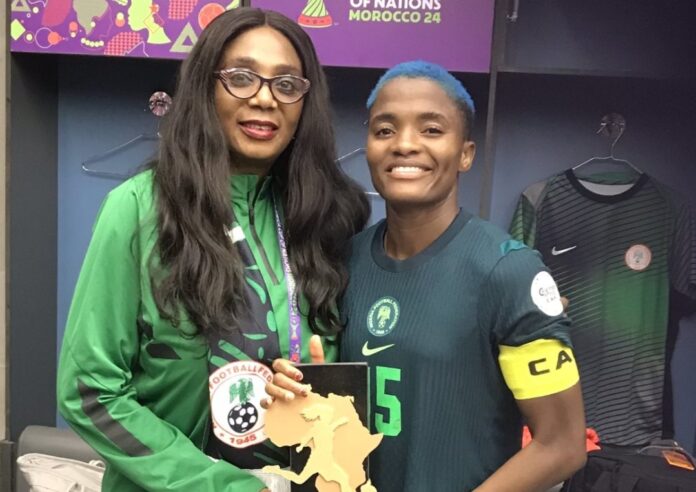 Super Falcons striker, Rasheedat Ajibade picked up a deserved Woman of the Match (WOTM) award on Thursday night after Nigeria edge past hard-fighting Botswana at the 2024 Women’s Africa Cup of Nations’ Group B game.