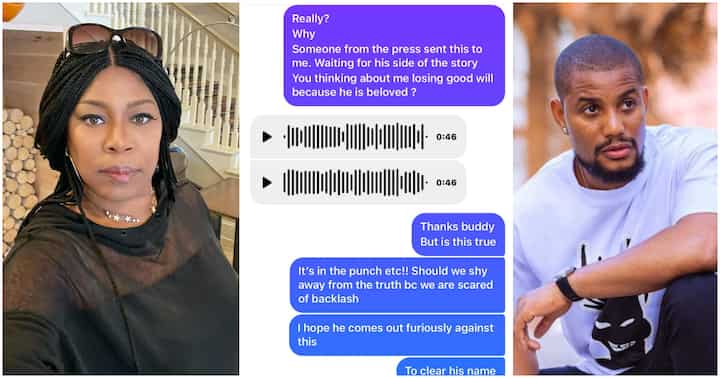 In screenshots of a chat Askia shared, Alexx appealed to her to take down her post on D’banj’s arrest, adding that it was not in their place to judge him.