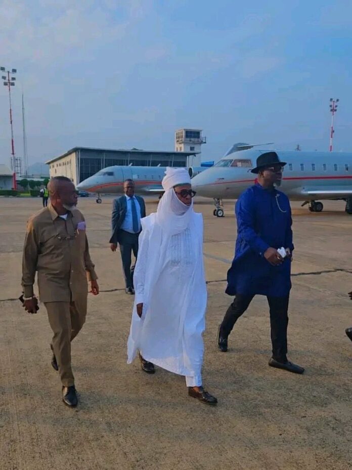 Former governor of Rivers State and previous Minister of Transportation, RotiminAmaechi, arrived in Daura, Katsina State, to attend the funeral of former President Buhari fully dressed in traditional northern chieftaincy attire.