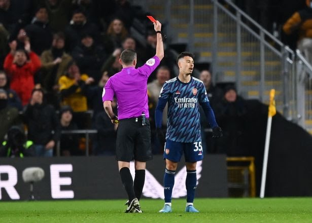 Gabriel scored the only goal of the match but his teammate Gabriel Martinelli was given an unusual red card as Arsenal beat Wolves 1-0 for their first win of 2022.