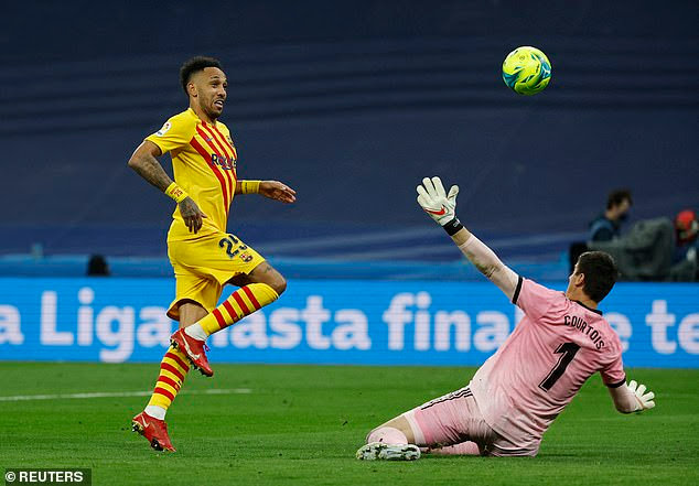 Barca dominated the opening exchanges and they were rewarded in the 29th minute when Aubameyang headed home a cross from Ousmane Dembele to give the visitors a 1-0 lead.