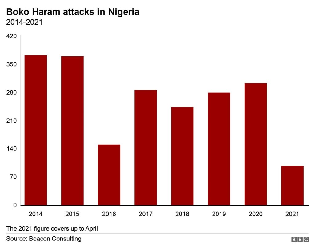 Bukarti told the BBC the insurgents appear to have “understood and adapted to the pattern of military airstrikes” and are taking advantage of the difficult terrain in Nigeria’s north-east to evade military attacks.