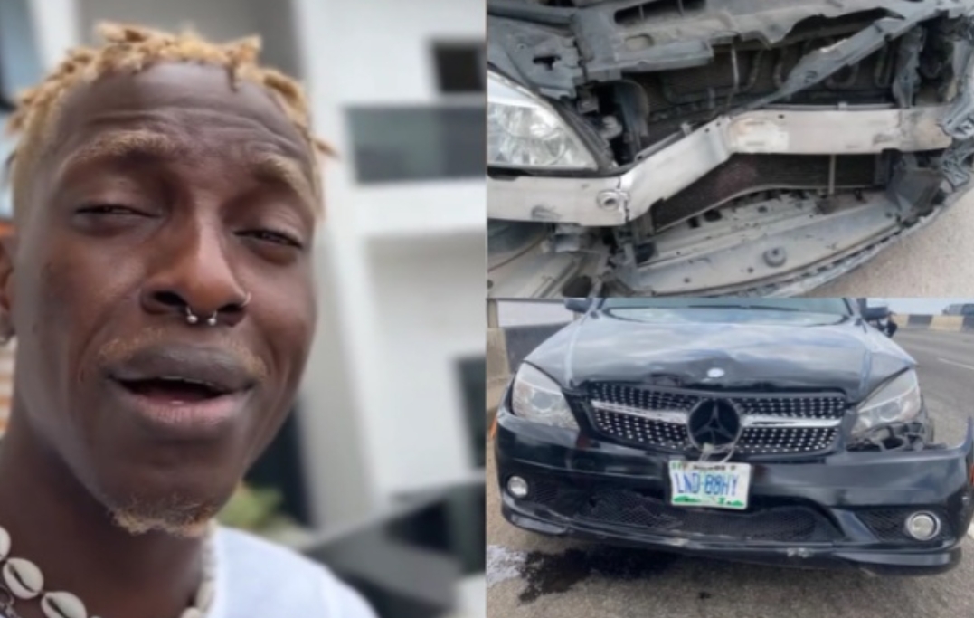 He made this known when he shared the pictures of his damaged black Mercedes on his Instagram story on Thursday.