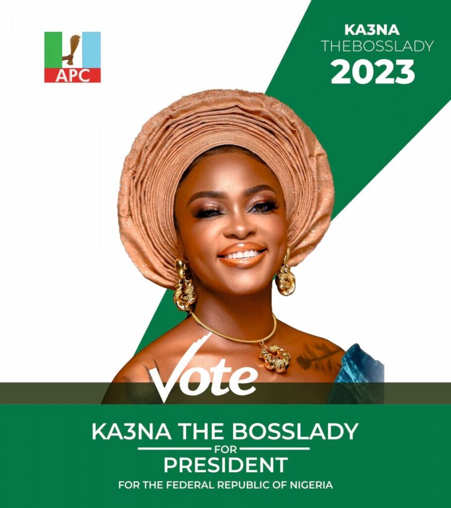 Ka3na via an IG post said she would be contesting for the presidency under the ruling All Progressives Congress (APC)