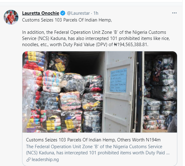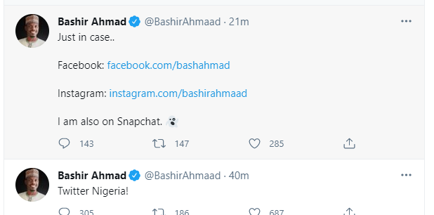 The irony of the Twitter ban was when the announcement was being made by Lai Mohammed, one of Buhari’s aides on social media, Lauretta Onochie, was at the same time using the same Twitter to advertise the effort of Customs in seizing some illegal imports into Nigeria. Another Buhari’s social media aide, Bashir Ahmad, used Twitter to advertise his other social media accounts – Facebook and Instagram. .