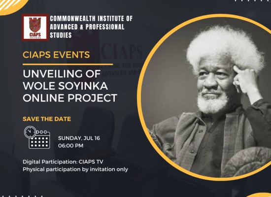 The Commonwealth Institute of Advanced and Professional Studies (CIAPS) has announced that the public unveiling of the Wole Soyinka Online Project would be held on July 16.