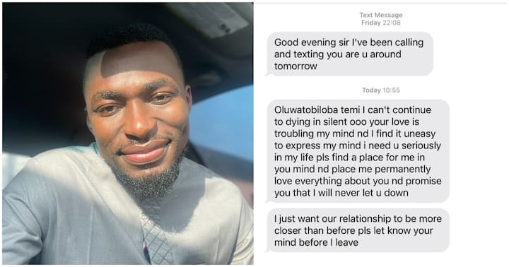 A Nigerian man identified as Toba Adeyeye has shared a romantic text his house cleaner, who he claimed is older and in her 40s sent to him.