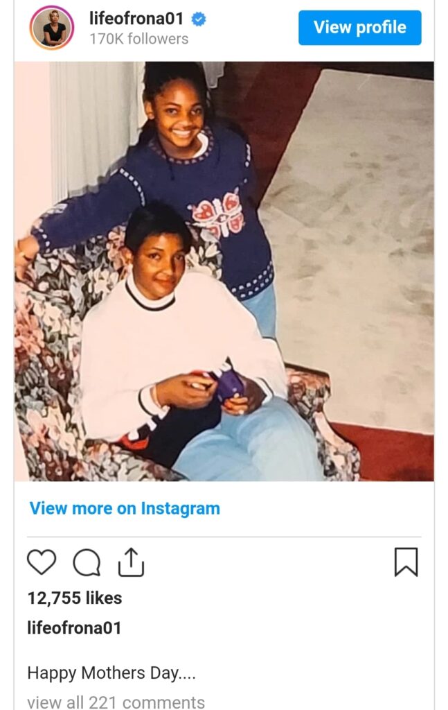 Sharon took to her Instagram page on Mother’s Day to share a photo of herself as a very young girl standing beside her late mother, who was sitting on a chair.