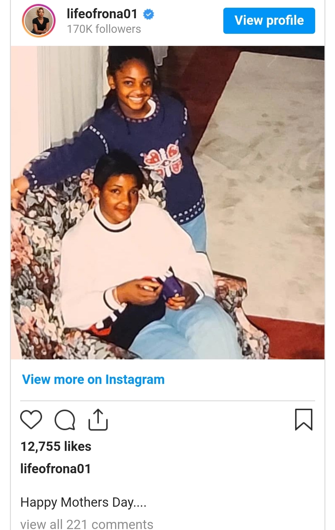 She also accompanied the picture with a short and simple caption, which sent a wish to her late mother on a special day when mothers are celebrated all over the world.