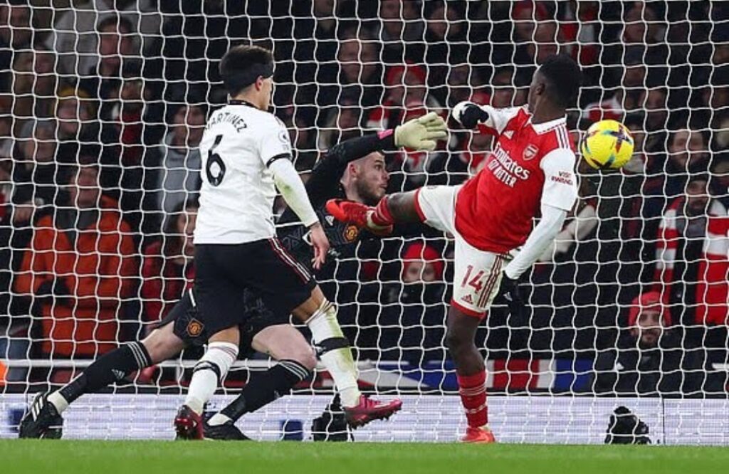 Arsenal went five points clear of champions, Manchester City, after Eddie Nketiah scored a brace in 90th-minute to beat Manchester United in a thriller at Emirates Stadium.