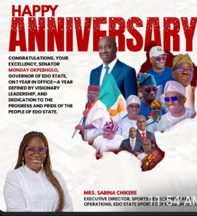 Executive Director of Sports Development at the Edo State Sports Commission, Mrs. Sabina Chikere, has expressed gratitude to Governor Monday Okpebholo as he marked one year in office, a year she described as “monumental” for sports in the state.