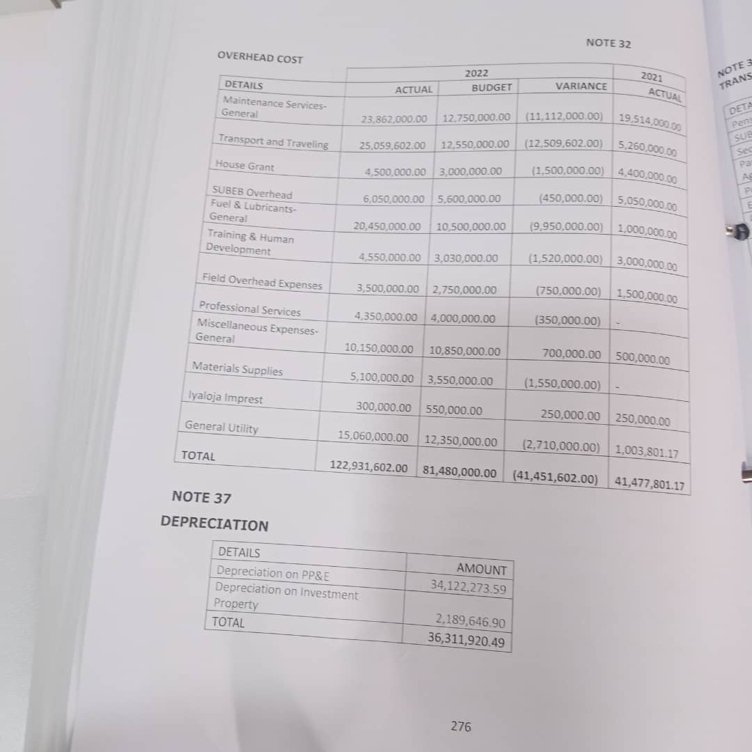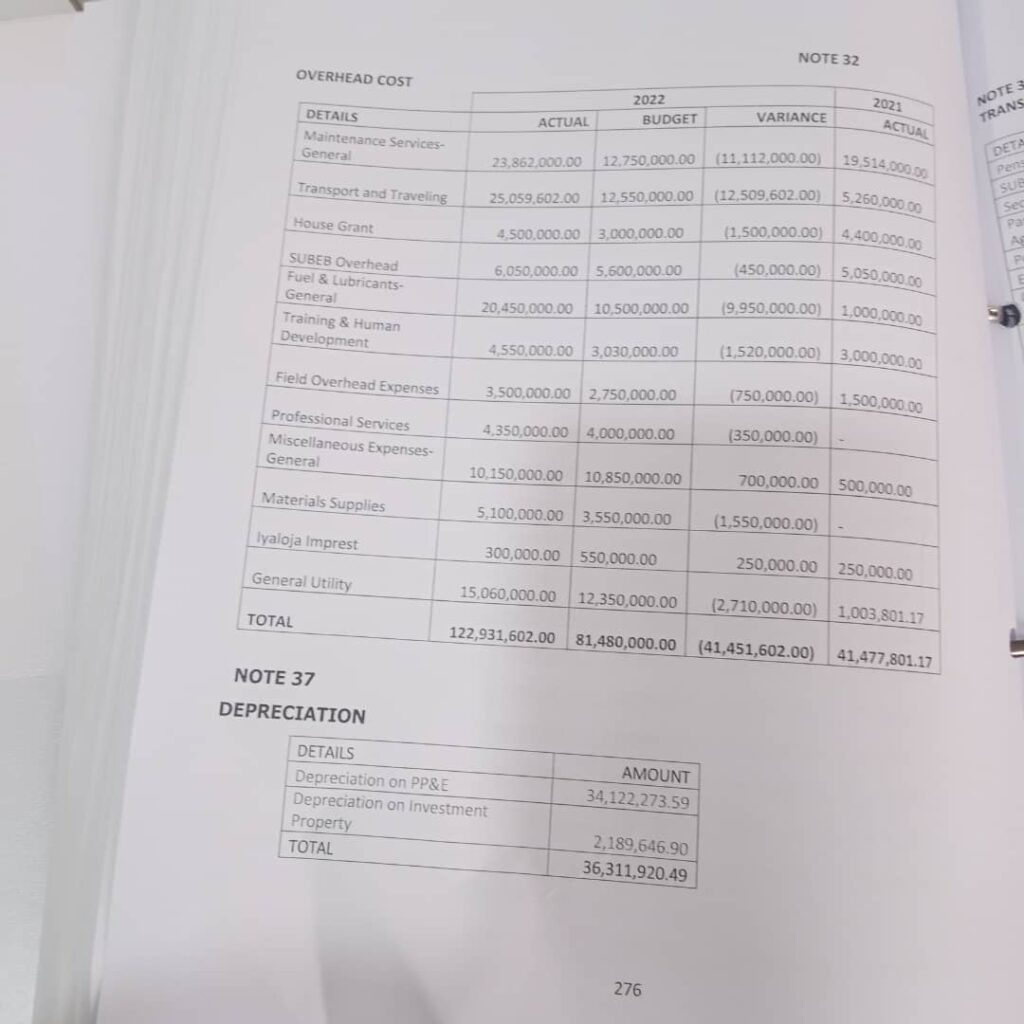 For instance in Overhead Cost, the total budget for Ekiti West in the year ended 2022 was N81, 480, 000 but the officials spent N122, 931, 602.00, exceeding the budget by a total of N41, 451, 602.00.