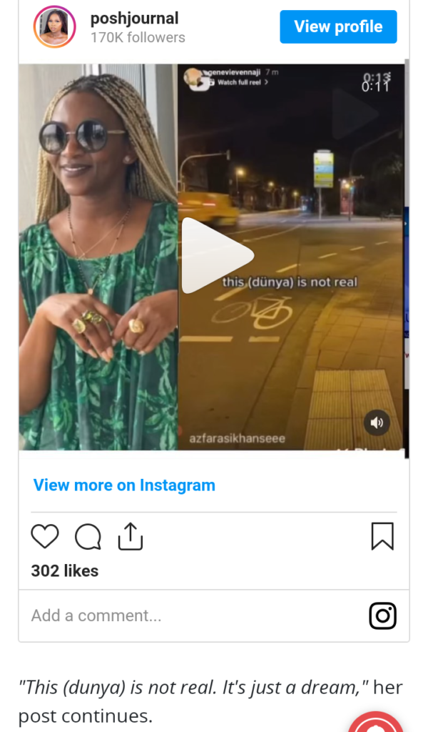 “This (dunya) is not real. It’s just a dream,” she also wrote