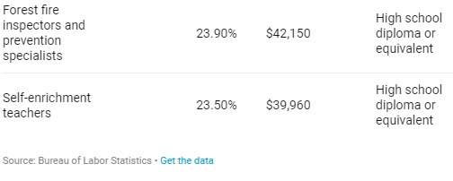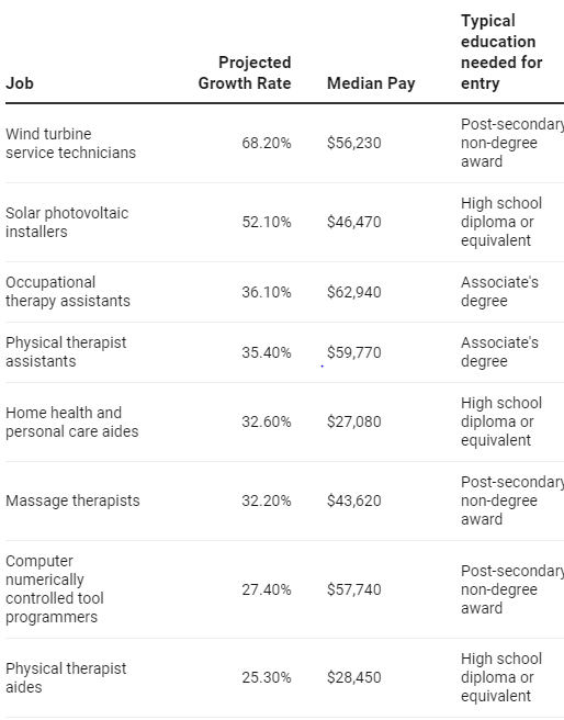 Many of these jobs require a high school diploma, associate’s degree, or a post-secondary non-degree award.