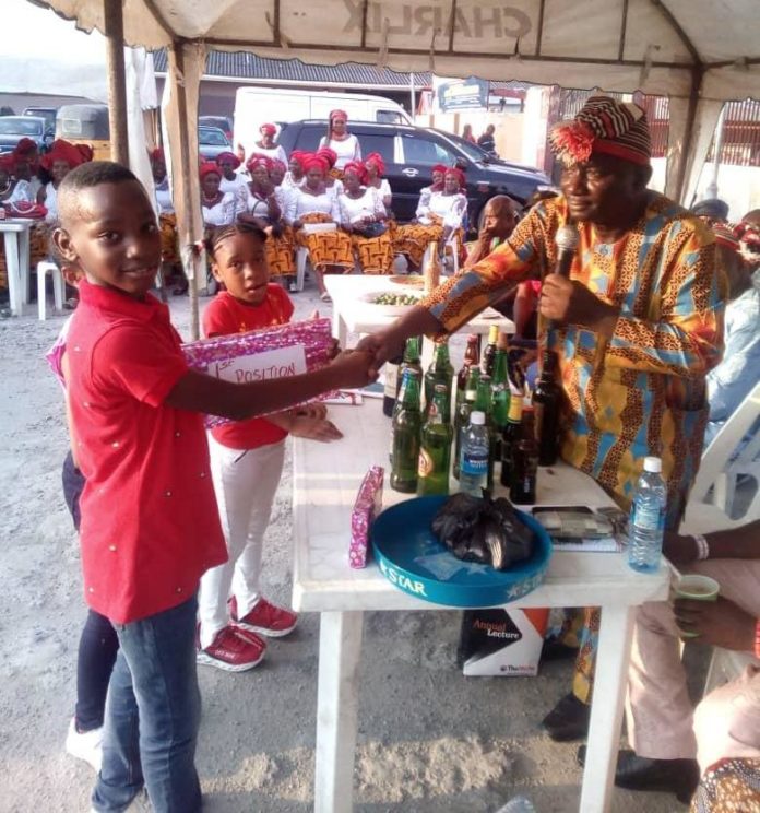 Prize giving by the chairman, Nze Onyewuchi J.K. Ojinnaka, after the children's performance.