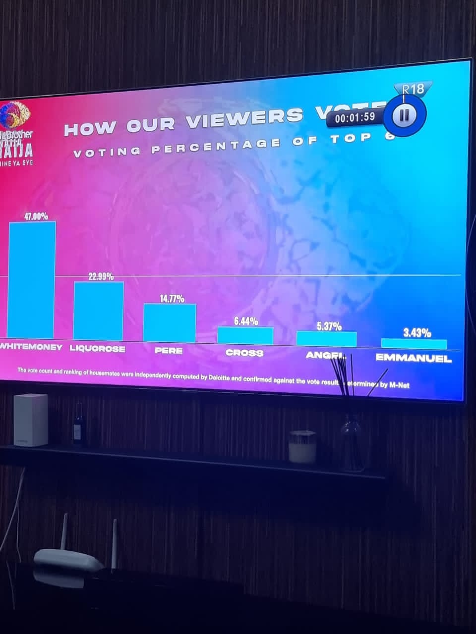 This implies it was not exactly the contest Nigerians were waiting for, as White Money almost won half of the votes , while 5 others shared 53 percent of the votes.