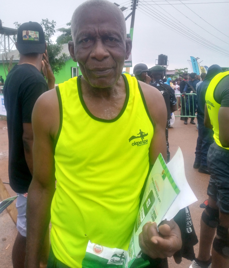 The over 7O years runner who participated in the 10th Okpekpe 10km race said following his passion for sports and willingness to catch up with lost years, he decided to follow his childhood hubby, athletics.