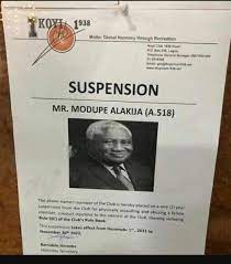 The elite Ikoyi Club decided to dramatize the suspension of Modupe Alakija by pasting his mug shot at the entrance of the club.