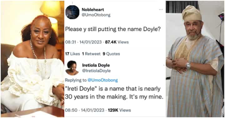 Responding to the netizen, she argued that the name ‘Ireti Doyle’ took her close to 30 years to build and she will not be dropping it soon.