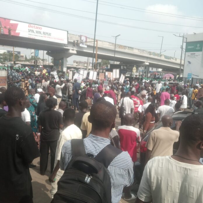 The June 12 protest called by the #EndBadGovernance Movement to express disapproval over government policies which they said have brought suffering and hunger, is currently holding at the Ikeja Under Bridge.
