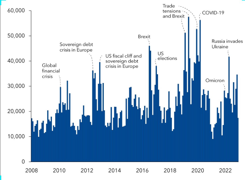 Sources: Ahir, Bloom, and Furceri (2022), Chart of the Week Jan.2023