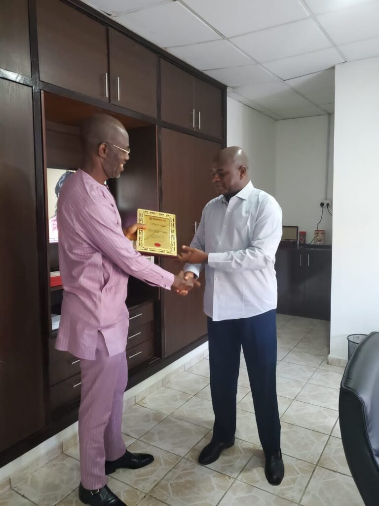 But on Tuesday, November 1, TheNiche Managing Director/Editor-in-Chief, Ikechukwu Amaechi, Chief Operating Officer, Eugene Onyeji, Human Resources Manager, Kehinde Okeowo, and Anthony Kila, a professor of Strategy and Development and Centre Director at the Centre for International Advanced and Professional Studies (CIAPS), who is also a columnist with the newspaper, formally presented Dr Kolade TheNiche Hall of Fame plaque at his Lagos home.