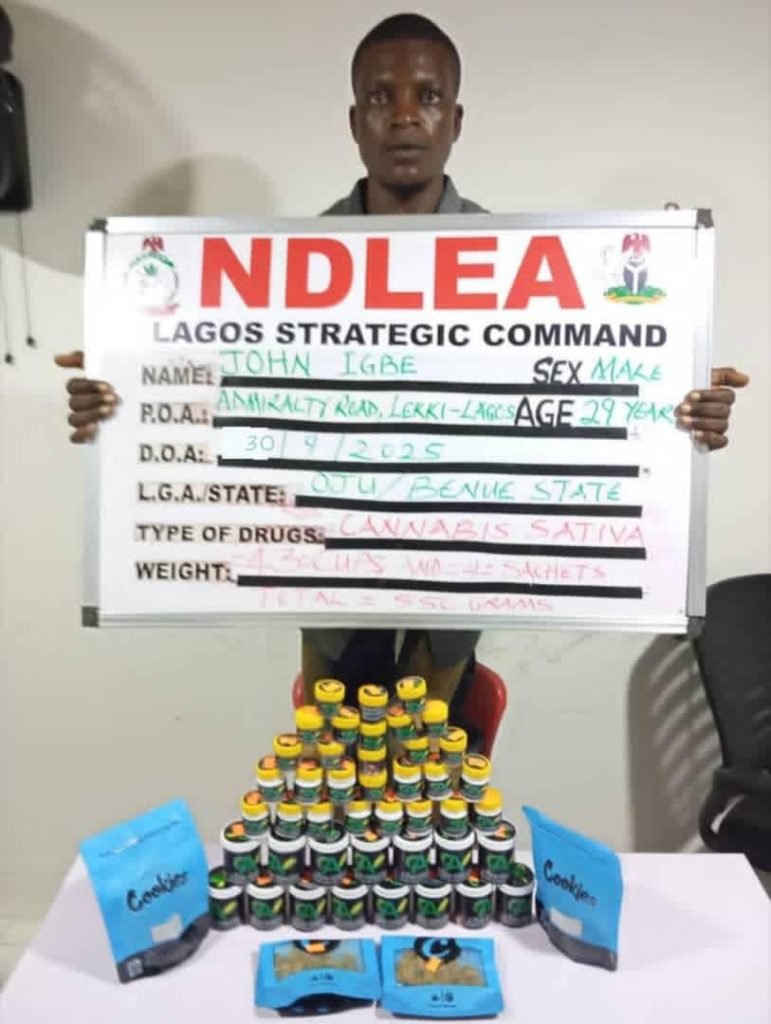 According to a release by the NDLEA Director, media and advocacy, Femi Babfemi, the beginning of the end of the criminal syndicate’s operations began on 16th September 2025 when operatives at the export shed of the Murtala Muhammed International Airport (MMIA) Ikeja Lagos intercepted 174 parcels of cocaine weighing 13.40 kilograms concealed in walls of cocoa butter body cream containers. A cargo agent was promptly arrested. Further investigations revealed Alhaji Hammed Taofeek Ode as the mastermind of the shipment. After weeks of intelligence, it was established that the drug baron had reported a dispute at the Zone 2 headquarters of the Police in Lagos, after which the Agency sought the cooperation of the police to get the suspect into custody.