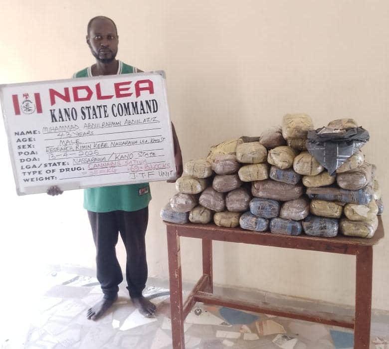 In Kano, a 22-year-old supplier of illicit substances to bandits, Muhammad Mohammed, has been arrested by NDLEA operatives on patrol along Bichi – Kano Road while heading to Katsina with 277 ampoules of pentazocine injection tied to his thigh and private part with Sellotape. He was intercepted on Sunday April, 13 while another suspect, Mohammed Abdulrahman Abdulaziz, 43, was nabbed same day at Research Rimin Kebe area of Nasarawa, Kano with 68 blocks of skunk, a strain of cannabis, weighing 30kg.