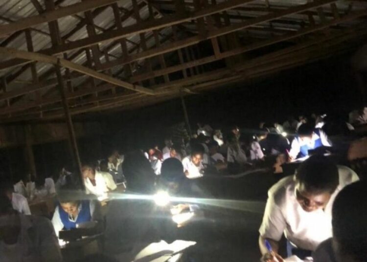 “It is 9:42 p.m., and these students are forced to use lamps to write their English WAEC exam in total darkness.”