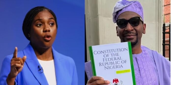 A Nigerian man based in the United Kingdom, James Akinwande, has taken the effort of delivering a copy of the Nigerian Constitution to the London office of British Conservative leader Kemi Badenoch.