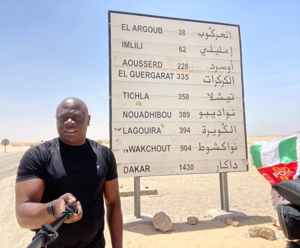 On his Twitter handle, @lionheart1759, Adeyanju, who began the journey on April 19, took pictures in all the countries he touched except Mauritania where he said there is nothing worth taking.