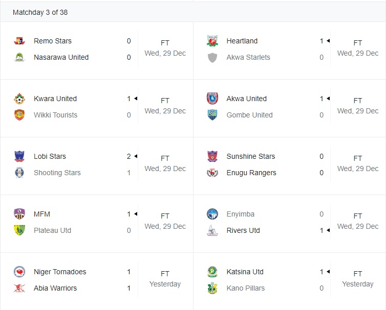 In a short statement to announce the fixture adjustment, LMC Head of Special Projects, Harry Iwuala, noted that “Shooting Stars match against Katsina United, Gombe United vs Lobi Stars and Abia Warriors vs Kwara United are now scheduled to hold on Monday, January 3, 2022”.