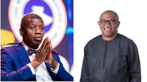 He said, “We welcome to the Redemption Camp for the first time Mr. Peter Obi.”
