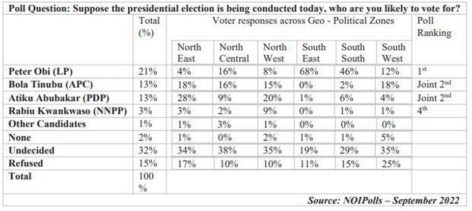 An opinion survey across the country conducted by NOI Polls puts Peter Obi eight points clear of both Bola Tinubu and Atiku Abubakar in the run for President, and Tinubu and his team are in panic mode gleaned from their reaction.