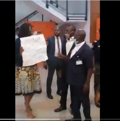 Her protest inside the complex of the National Assembly rattled the security officers and staff who tried to harangue her out of the vicinity. But she calmly made her point by displaying the placard, which one of the staff of the National Assembly was making effort to rip apart.