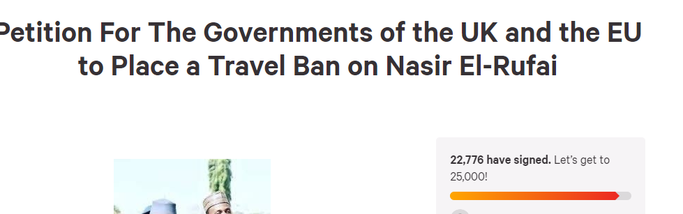 In a mater of hours, a petition seeking the United Kingdom (UK) and the European Union (EU) to place Visa ban on Governor Nasir El-rufai of Kaduna State will hit the 25,000 mark.