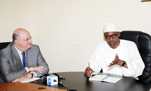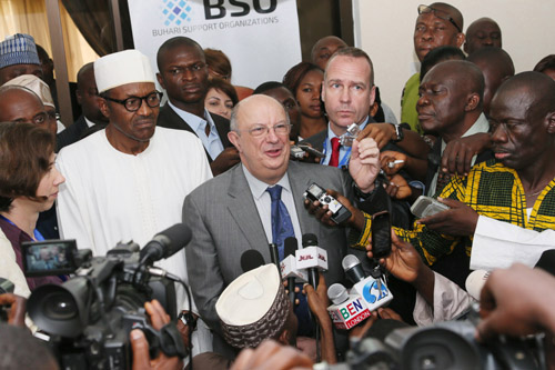 A member of the European Parliament and Chief Observer EU Observation to Nigeria, Mr Santiago Fisas Ayxelà, APC presidential candidate, General Muhammadu Buhari and EU Head, Mr Michel Arrion at a meeting between Buhari and EU Election Observers in Abuja on Monday.R-L: APC presidential candidate, General Muhammadu Buhari and member of the EU Parliament and Chief Observer European Union Observation to Nigeria, Mr Santiago Fisas Ayxelà at a meeting between Buhari and the EU Election Observers in Abuja on Monday.L-R EU Head, Mr Michel Arrion, member of the EU Parliament and Chief Observer EU Observation to Nigeria, Mr Santiago Fisas Ayxelà and APC presidential candidate, General Muhammadu Buhari at a meeting between Buhari and EU Election Observers in Abuja on Monday.A member of EU Parliament and Chief Observer, EU Observation to Nigeria, Mr Santiago Fisas Ayxelà and APC presidential candidate, General Muhammadu Buhari addressing the press at the end of the meeting between Buhari and EU Election Observers in Abuja on Monday.