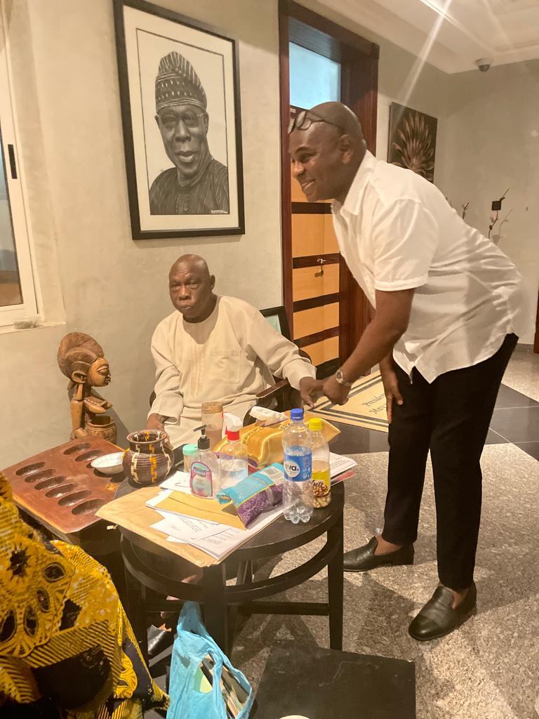 Professor Kingsley Moghalu, presidential aspirant and former Deputy Governor of the Central Bank of Nigeria (CBN), with former President Olusegun Obasanjo on Sunday evening at Obasanjo’s residence in Abeokuta when Dr. Moghalu visited the elder statesman who recently turned 85 to wish him a Happy Birthday.