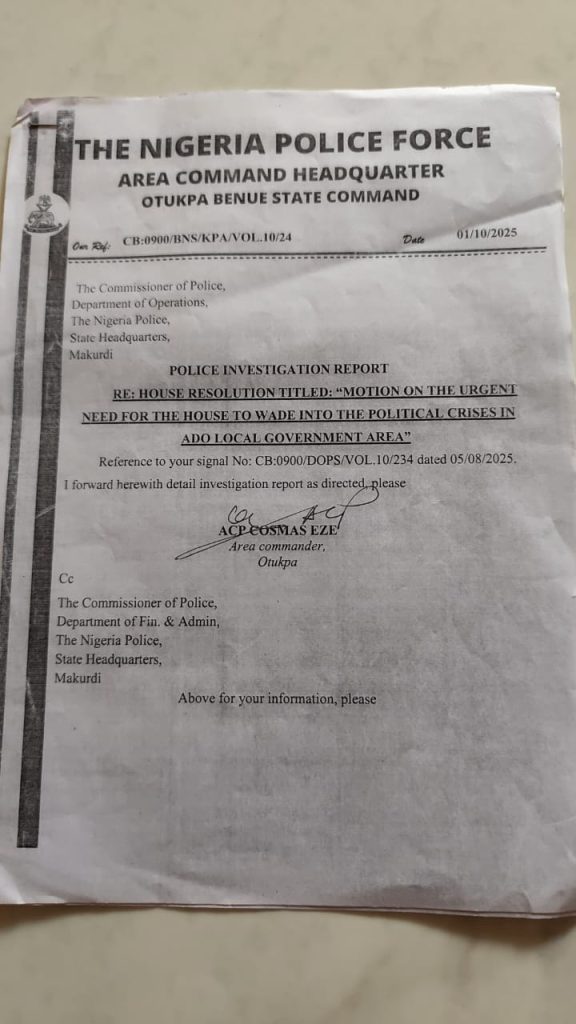 HomeNEWSPolice clear Ado LG chairman of wrongdoing in Benue Deputy Speaker allegation