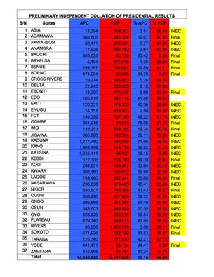 The results were announced by the returning officers of the states at the National Collation Centre in Abuja.
