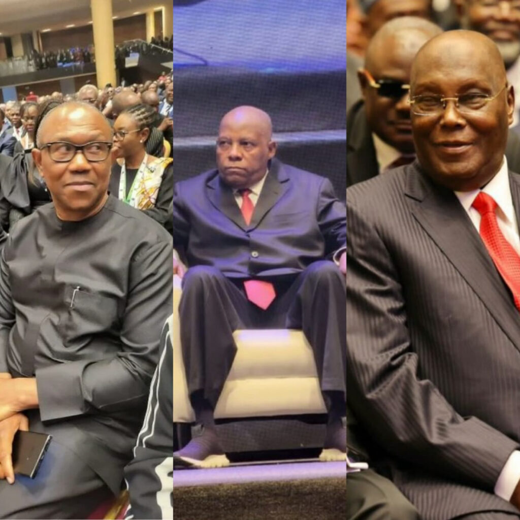 The Labour Party presidential candidate, Peter Obi, came to the NBA conference in his signature senator outfit, but this time a grey colour, not the usual black.
