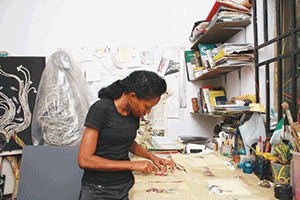 “Hence a journey of self-discovery began in this project, with a focus on my family history; so content lies more in the process of creating the works and even less in the finished works. Through these processes and acts of drawing, tearing, weaving or distressing surfaces, I am unravelling and questioning myself and my identity.”