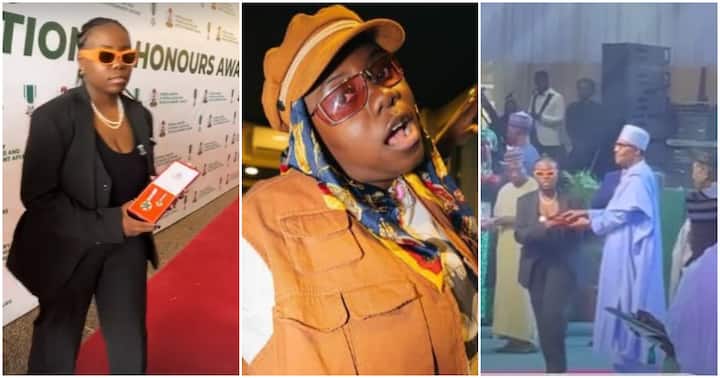 The video from the award ceremony showed when Teni, who donned a suit, was called upon to receive her award, after being conferred with the Member of the Order of the Niger (MON) award.