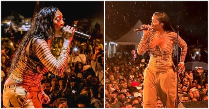The music star was in the East African country for her live-in Kampala concert tagged, “Who Runs the World?” but had to defy the rain as the heavens opened up.