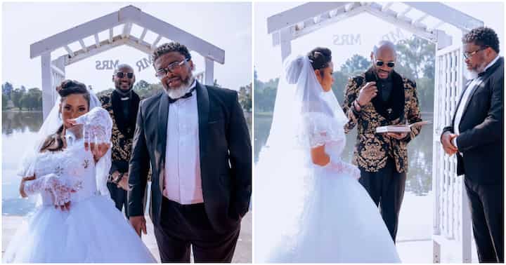 Idibia was seen holding a bible and standing in between the couple, as he blessed the union of the newly wedded.