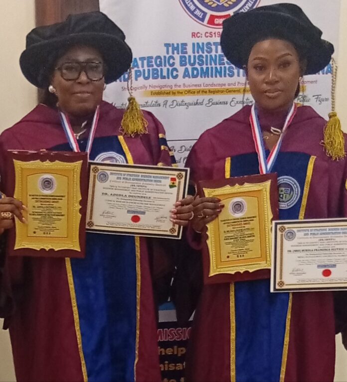 The Institute of Strategic Business Management and Public Administration (ISBMPA) Ghana has conferred Distinguished Fellowship Doctorates on two Nigerian professionals, Ms. Adeola Ogundele and Mrs. Bukola Francisca Oluyelu, in recognition of their outstanding contributions in their respective fields.