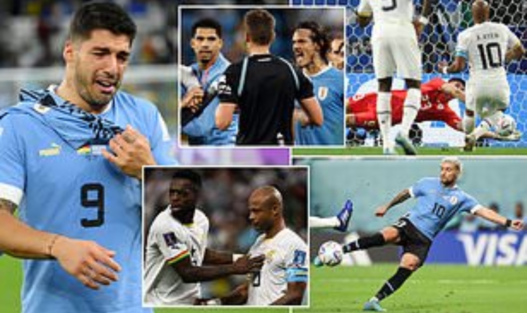 Uruguay beat Ghana 2-0 but went out of the World Cup as they finished third behind South Korea in Group H, despite Luiz Suarez’s heroics in a match played at Al Janoub Stadium.