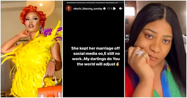 Apparently reacting to the news, Nkechi took to her Instagram stor to mock Nina, stating that the BBNaija star’s marriage failed even though she did all she could to keep it off social media.