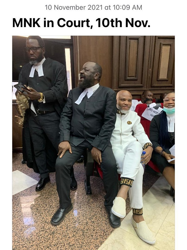 Kanu, who was brought into the courtroom around 9:52 am, had shortly after his case was called up, bemoaned the refusal of security agents to allow some members of his legal team, especially his lawyer from the the United States of America, Bruce Fein, to enter the courtroom.
